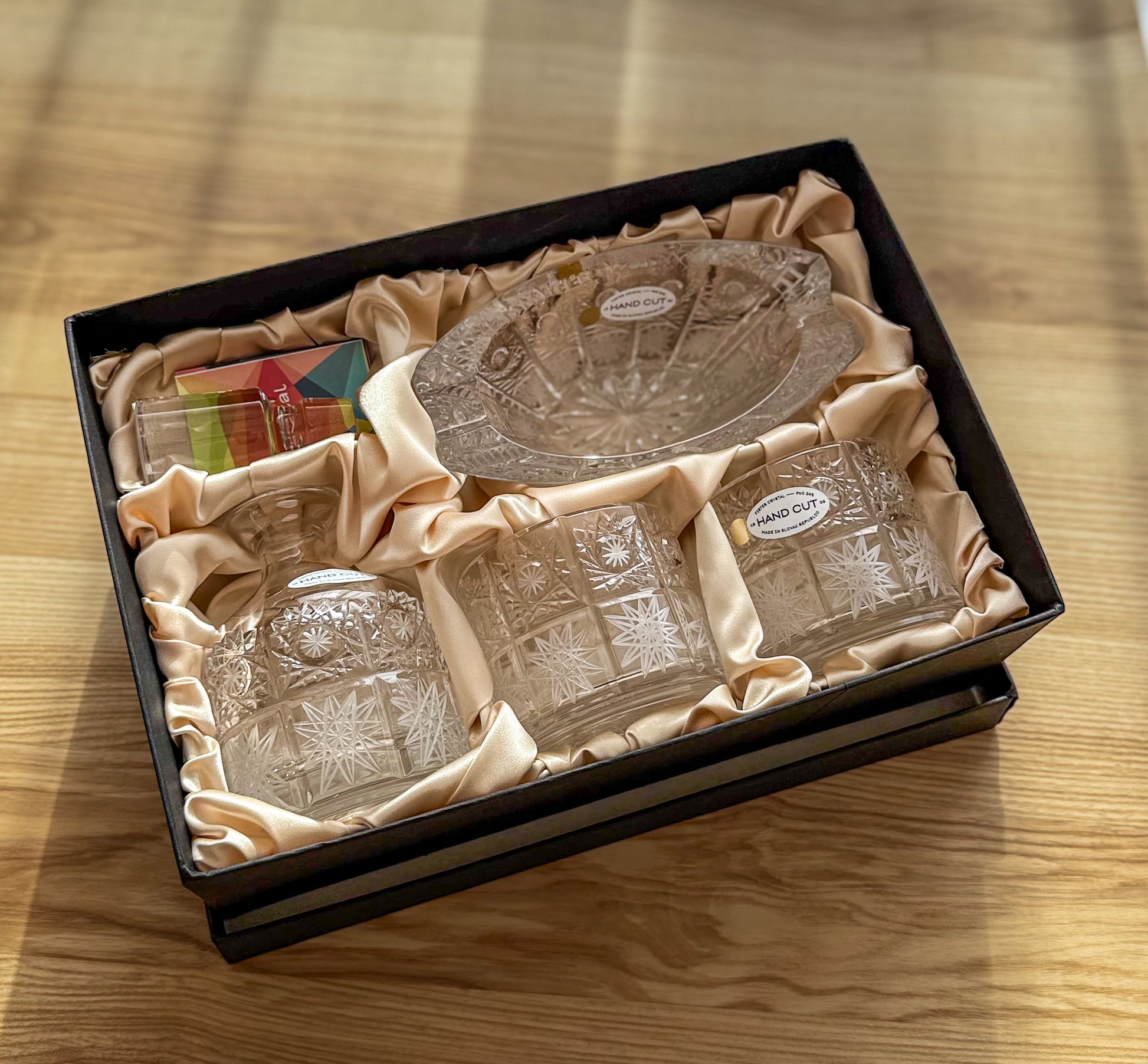 Tento ručne vyrobený set je ideálnym darčekom pre výnimočných ľudí, ktorí oceňujú originalitu, kvalitu a luxusné spracovanie. Zabalený v elegantnej darčekovej krabici vystlanej saténom, je pripravený potešiť aj tých najnáročnejších.