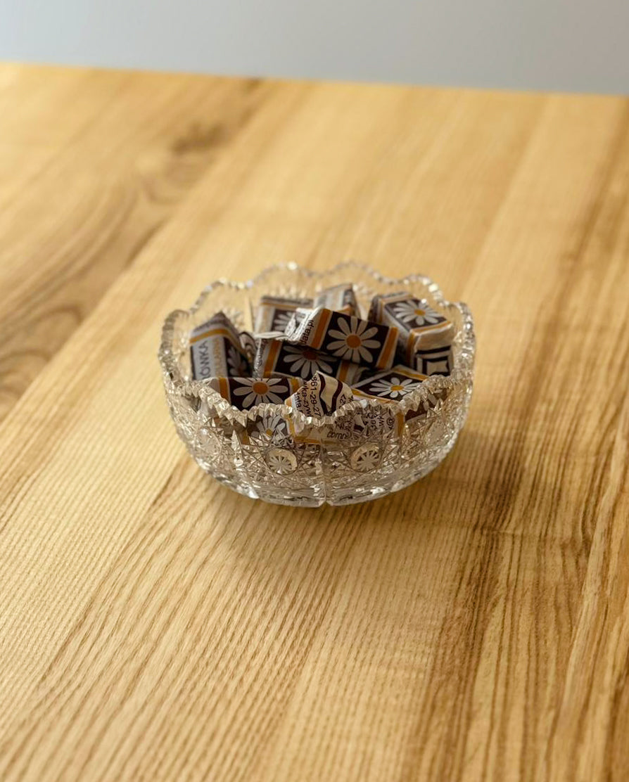 Miska Perla - Luxusná miska, ktorá svojím tvarom a dizajnom nadväzuje na krásu misky Aurélia. Ručne brúsený krištáľ zdobený vzorom PK500 dodáva miske nádych elegancie a sofistikovanosti, ktorý osloví aj tých najnáročnejších.