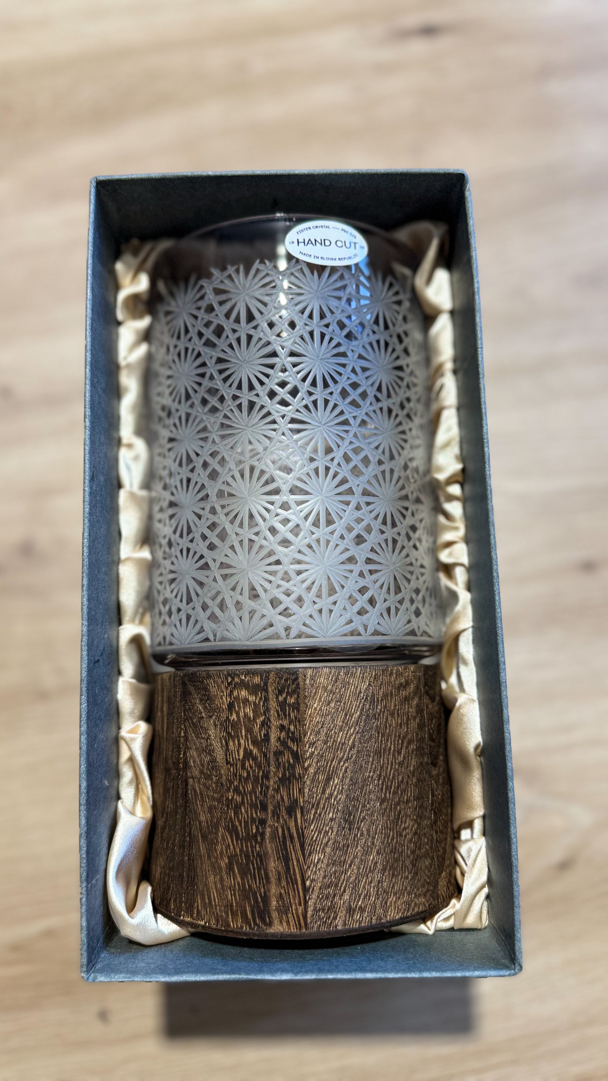 TIMEA nie je len váza – je to remeselný a dizajnový objekt, ktorý spája čistotu skla, teplo dreva a precíznosť ručného brúsenia.