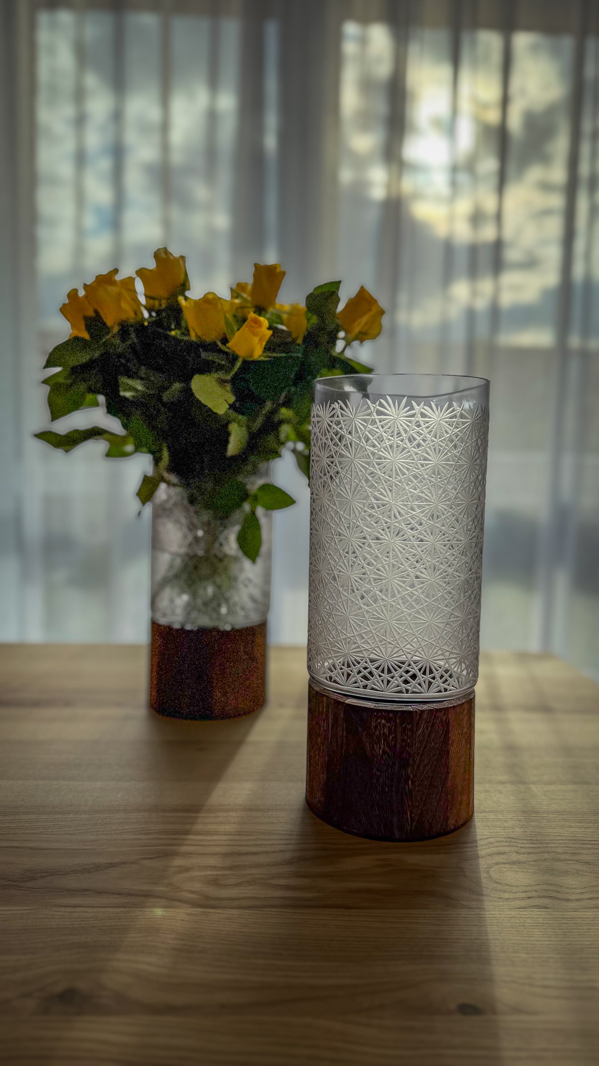 Váza TIMEA M – sklo, drevo a každý rez s príbehom