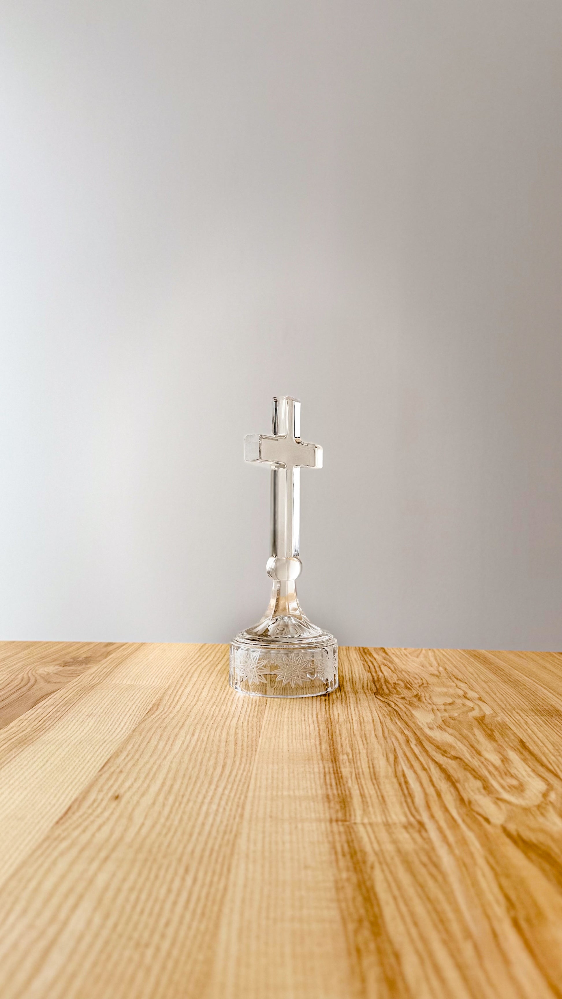 Tento model sa odlišuje svojou majestátnou siluetou. Dizajn, ktorý evokuje pevnú podstavu, dodáva krištáľovému krížu stabilitu a jedinečný architektonický charakter. Vďaka svojej výške 23,5 cm pôsobí v priestore štíhlo a dominantne, pričom si zachováva jemnosť brúseného skla.